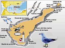 A 40 millas nauticas de la costa almeriense se encuentra la desconocida isla de Alborán. Mide menos de un kilómetro de largo con una orografía plana y barrida casi continuamente por vientos de poniente o levante. Los musulmanes la bautizaron como "Ombligo de mar" y se cree que debe su nombre al pirata moro almeriense Al-Borani, que solía refugiarse en la isla, donde la leyenda asegura que escondía sus tesoros. En su superficie se encuentran algunas joyas botánicas y la rara gaviota de Audouín. En sus fondos, toda la riqueza del mundo marino.